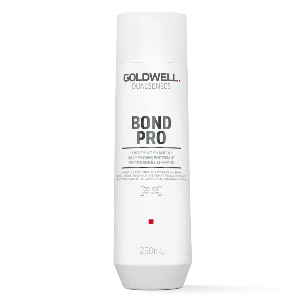 Bring your weak and fragile hair back to life with the Goldwell Dualsenses Bond Pro Fortifying Shampoo. Formulated with Goldwell's microPROtec complex and Inter-Amino-Bond-Builder to instantly provide care and structure to the hair. As gentle as water, the unique Fade stop formula minimizes color fading with each use. Goldwell's first step towards strengthening and protecting against breakage.