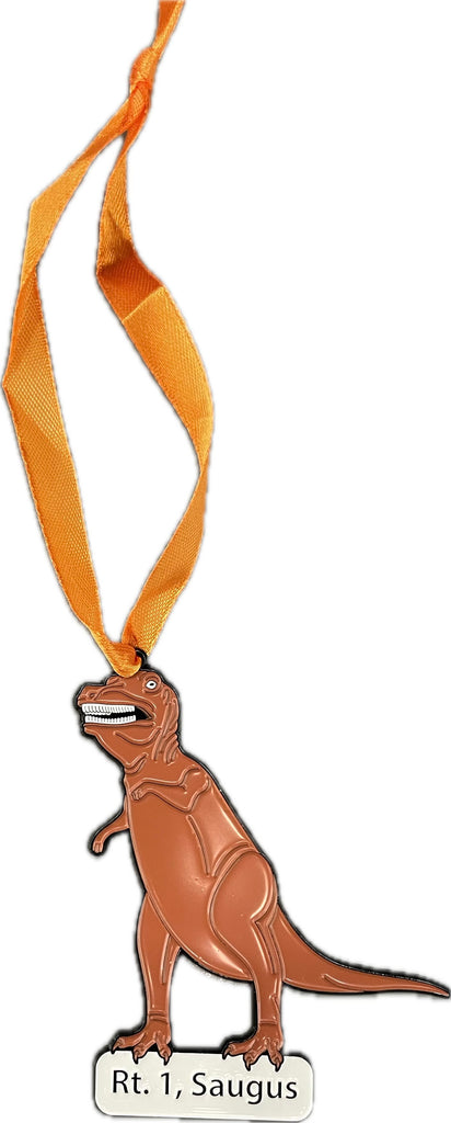 Legendary Orange Dinosaur from Route 1 Saugus ornament. Add this iconic dino to your tree this year.